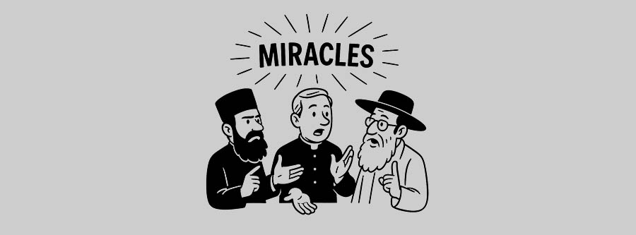 Ksiądz, Pop i Rabin dyskutują o cudach.